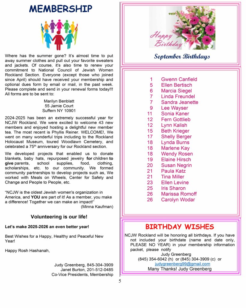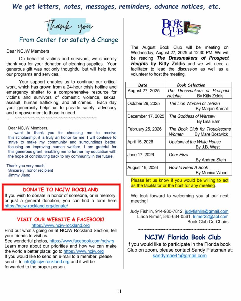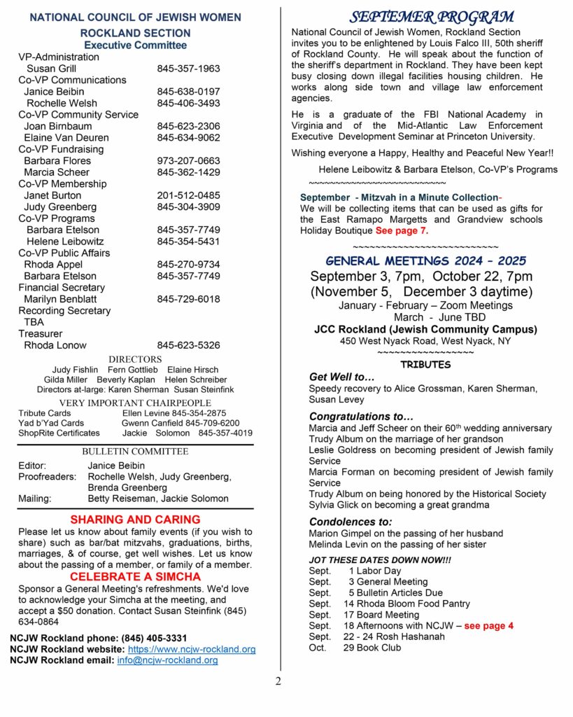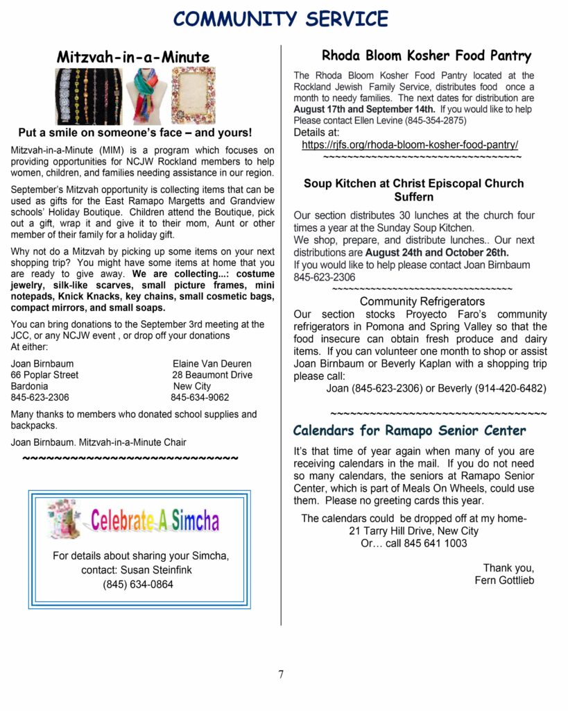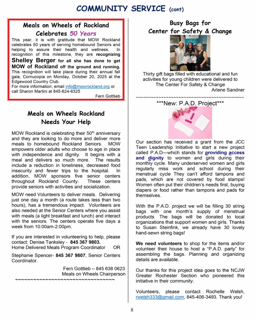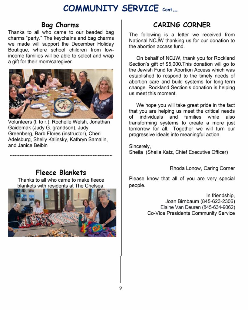 Narional Council of Jewish Women, Rockland Section